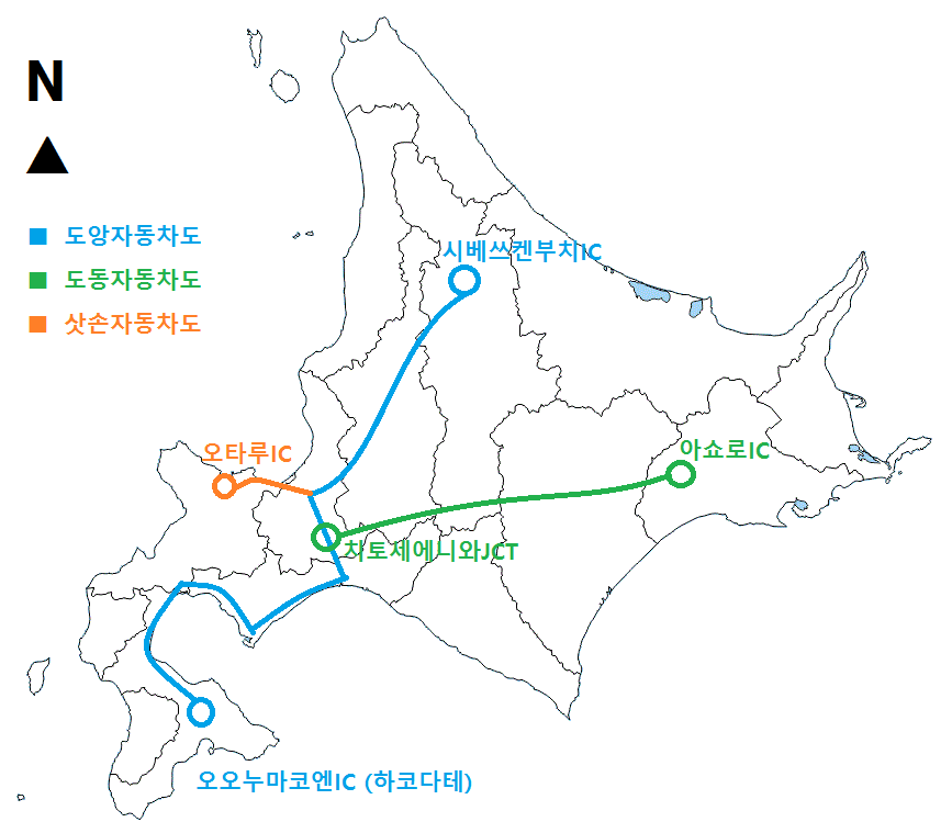 넓은 홋카이도에서 보다 빠르게 이동하고 싶을 때 정답은 고속도로다. 홋카이도의 자동차도(고속도로의 일본표기법)는 삿포로를 중심으로 동서남북으로 뻗어있고 한국에 비하면 통행량이 적어