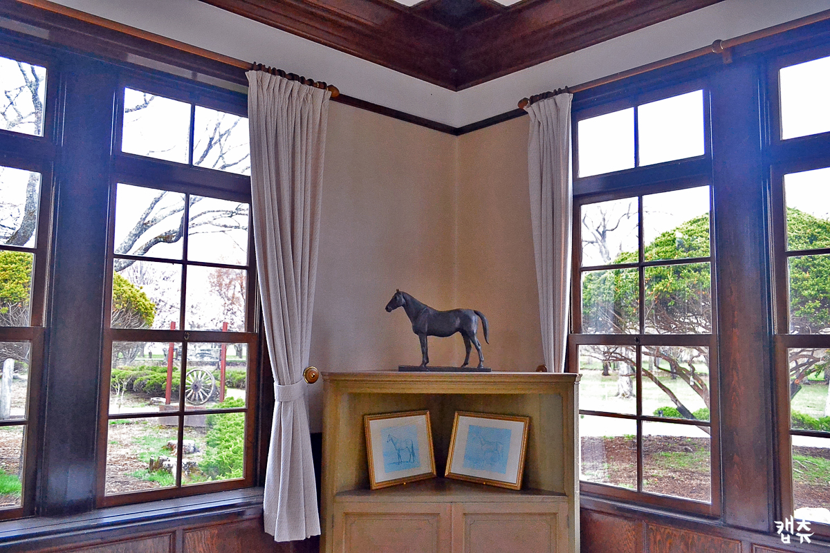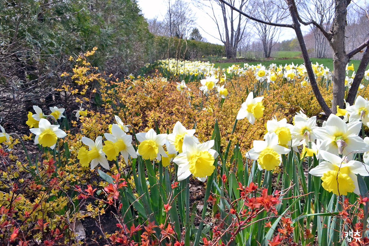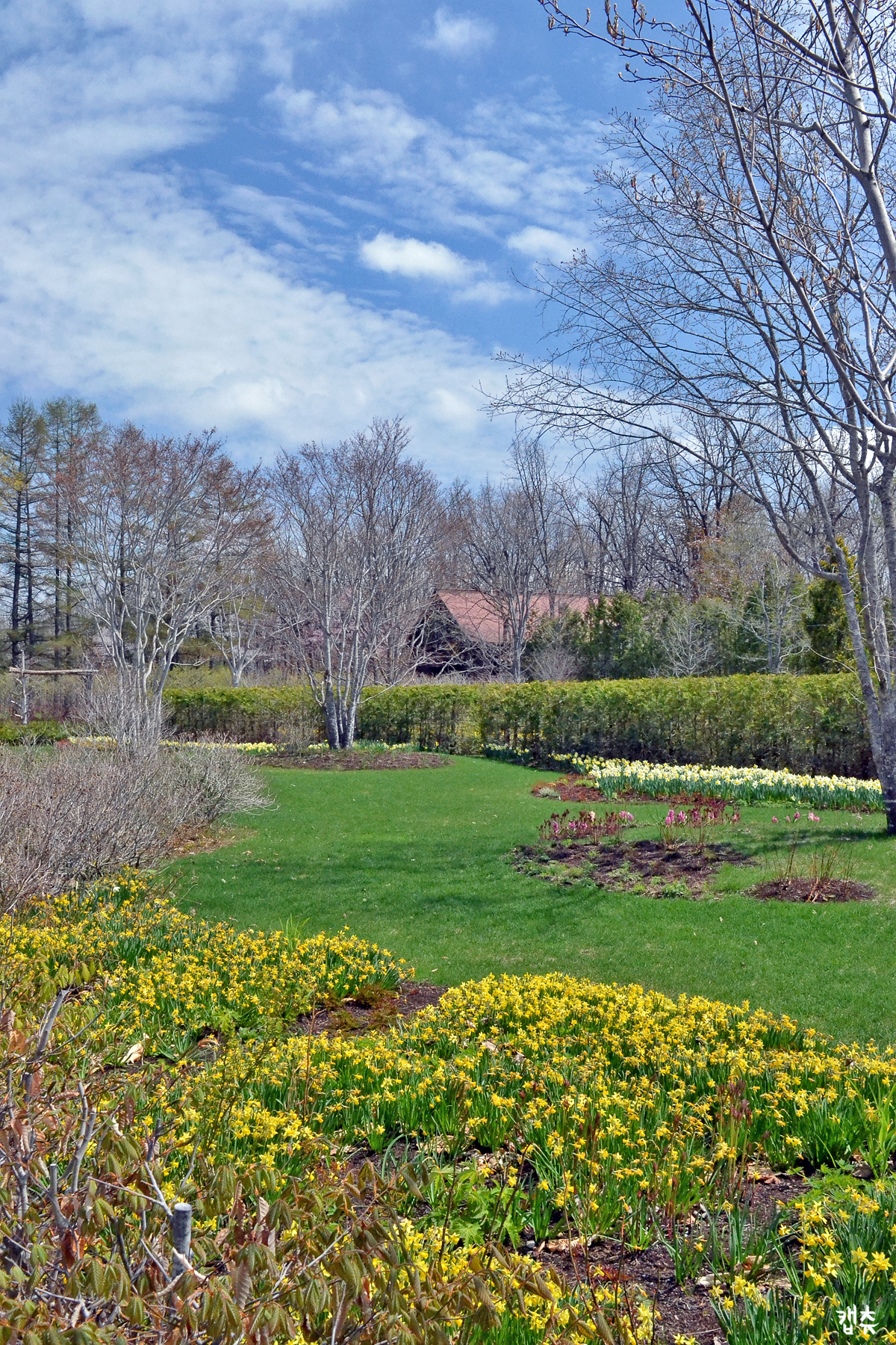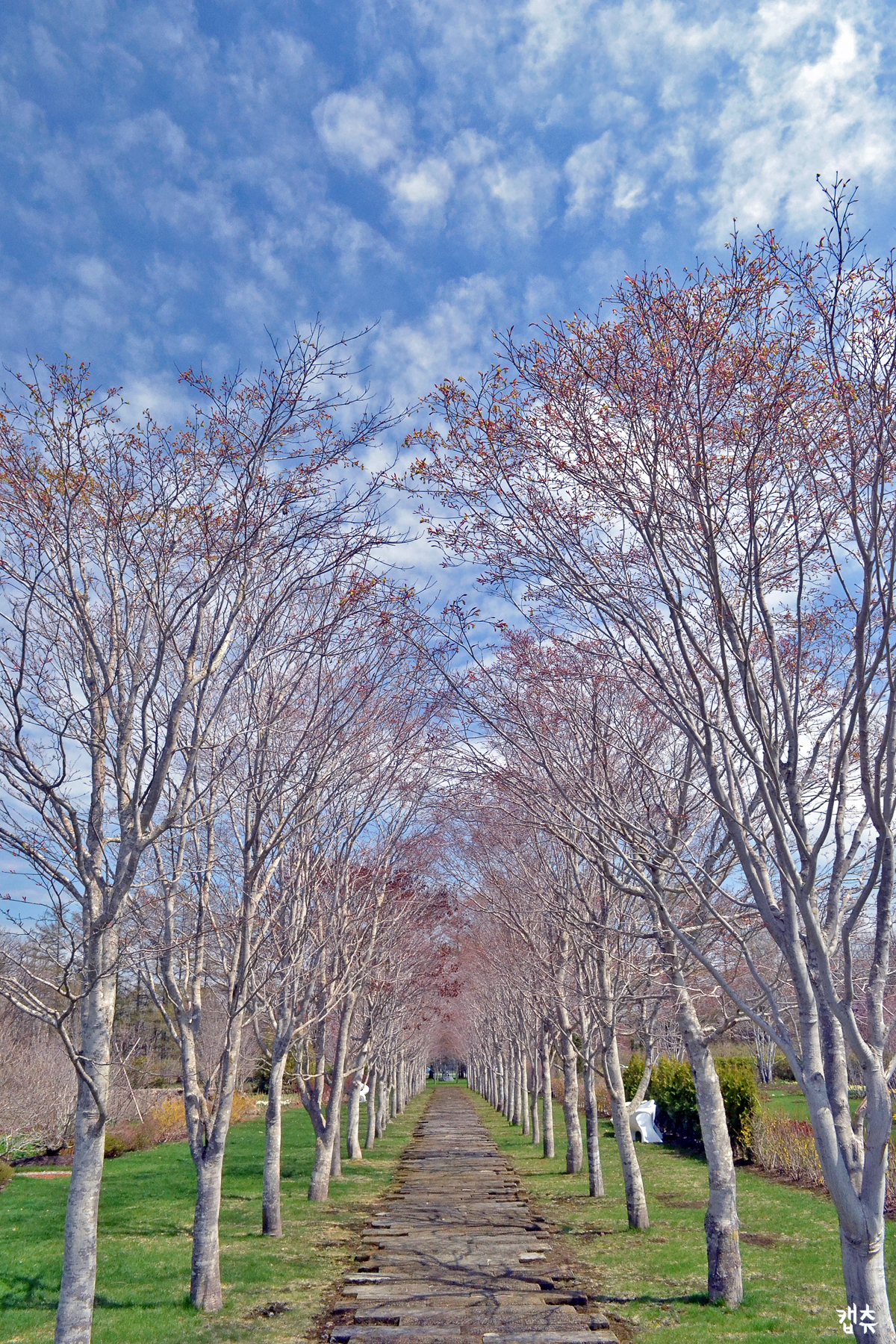 또 목장 주위에 흔하게 볼 수 있었던 에조야마벚꽃나무(홋카이도 야생 산벚나무)를 가져다 심어서 봄이 되면 벚꽃, 말, 초원의 조합이 빛을 발한다.