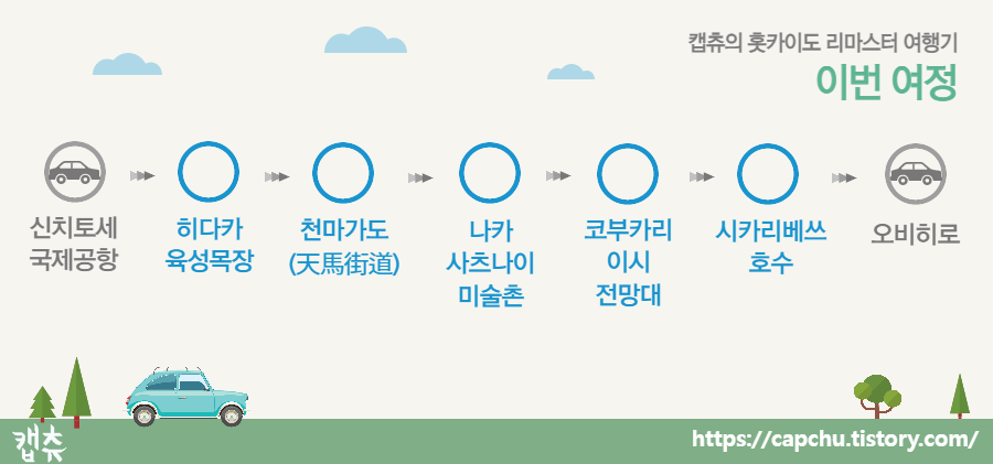 도동(홋카이도 동부)은 대중교통이 불편해서 렌터카로 다녔고 여정의 순서는 아래와 같다.