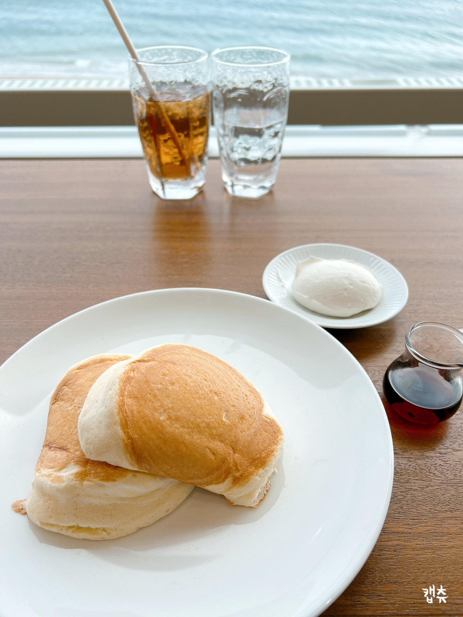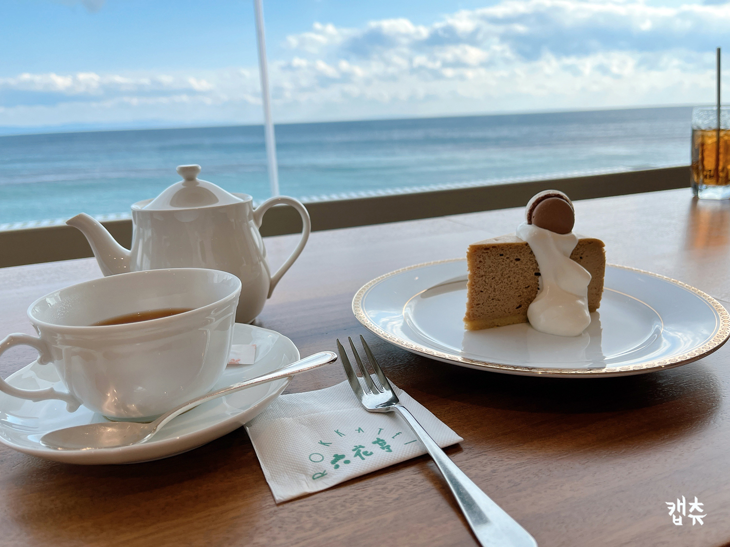 나는 유리창 너머 밀려오는 파도를 보다가 심심하면 디저트 한입 하면서 그렇게 시간을 보냈다. 새벽 3시 15분에 일어나 마쓰마에를 찍고 하코다테 언덕 위를 걷고 있는 강행군 속 티타임이었다. 눈앞의 파도가 버퍼링이 생기면 잠의 유혹 때문이라고 생각하며 눈을 감았다.