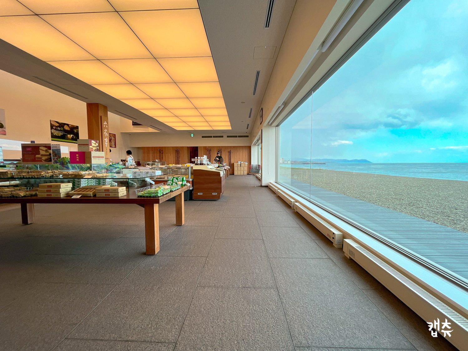 새로 생긴 이사리비점(漁火通店)에 갔다. 이사리비점은 하코다테 해변을 마주하고 있다. 2층에 올라가 점원 안내에 따라 앉는다. 자리가 없으면 대기 명부에 이름과 인원수, 창가석 희망 여부를 적고 점원에게 말하면 번호표를 준다. 20분 정도 기다리면서 1층 매장에서 과자 구경을 했다.