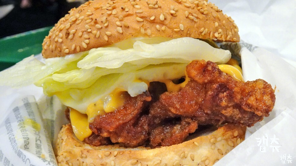 가네모리 아카렌가와 작별 전, 우리는 럭키피에로(랏키피-) 베이에이리어점에 들러 차이니즈 치킨버거 두 개를 포장했다, 특상으로 2개!(特上: 계란후라이+치즈 추가 버전).